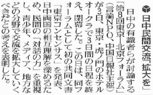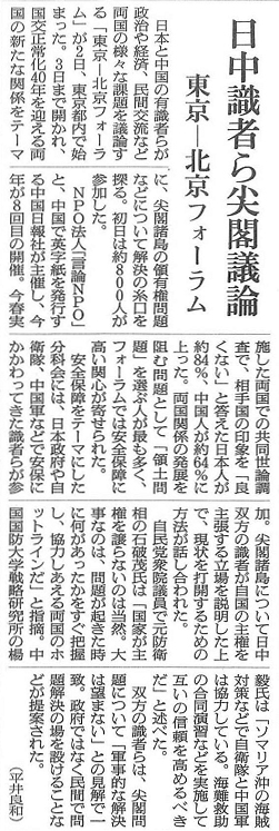 日本と中国の有識者らが政治や経済、民間交流など両国の様々な課題を議論する「東京-北京フォーラム」が2日、東京都内で始まった。3日まで開かれ、国交正常化40周年を迎える両国の新たな関係をテーマに、尖閣諸島の領有権問題などについて解決の糸口を探る。初日は800人が参加した。