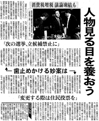 【東京新聞】『公約破り』国も地方も 人物見る目を養おう」