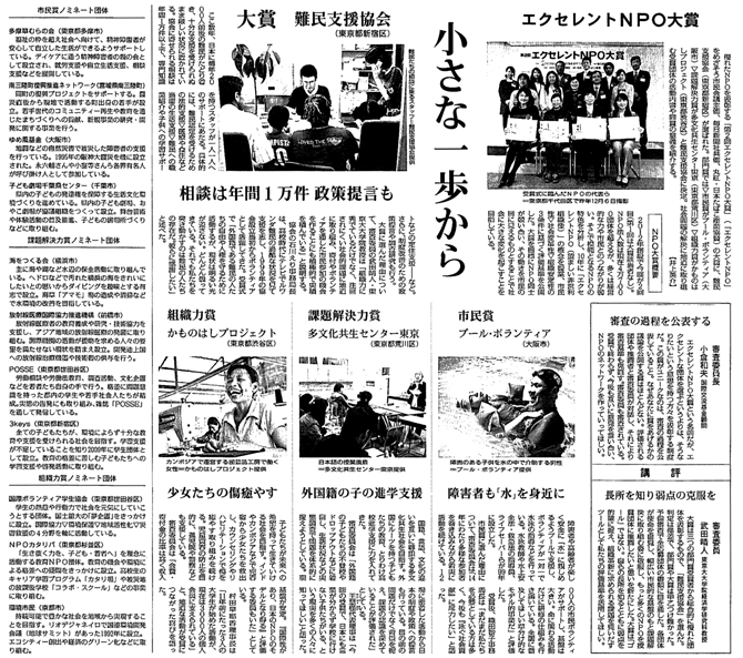 【毎日新聞】エクセレントNPO大賞 小さな一歩から