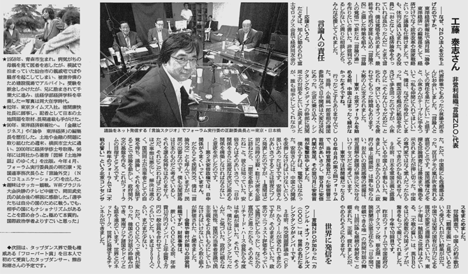 【朝日新聞別刷『be on Saturday』】フロントランナー:民間外交10年、日中をつなぐ