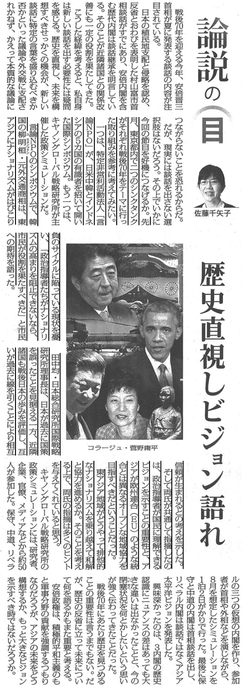 【毎日新聞】論説の目 歴史直視しビジョン語れ
