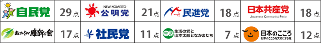 共産党 28点 :具体的な財源は示したが、提示した政策に見合ったものかが不明